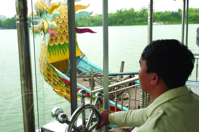 | Du khách đi thuyền trên sông Hương. Ảnh: Arab News. |