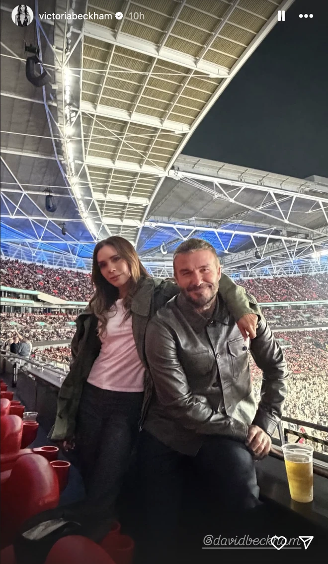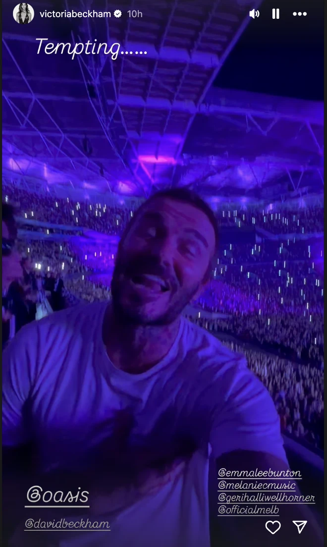 Nhà Beckham vừa có một buổi tối quẩy hết mình tại đêm diễn cuối cùng trong tour UK của huyền thoại Oasis. David Beckham và Victoria dẫn theo 3 con: Romeo, Cruz và Harper. Cả gia đình liên tục đăng tải ảnh - clip check-in cực rộn ràng trên Instagram.