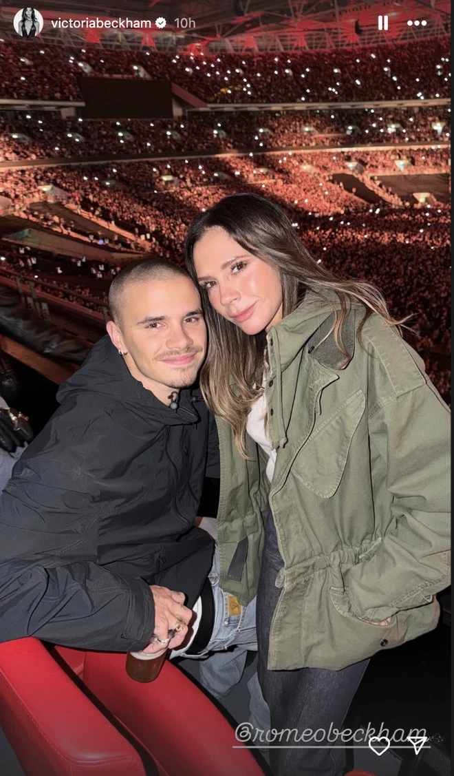 Trong buổi tụ tập đi xem concert của gia đình Beckham, cậu út Cruz không ngần ngại công khai "dính như sam" với bạn gái hơn 10 tuổi - Jackie Apostel còn cậu hai Romeo thì nhẹ nhàng chụp hình cùng mẹ. David Beckham cũng tranh thủ gặp gỡ Paul "Bonehead" Arthurs (Oasis) và Richard Ashcroft (The Verve) ở hậu trường.
