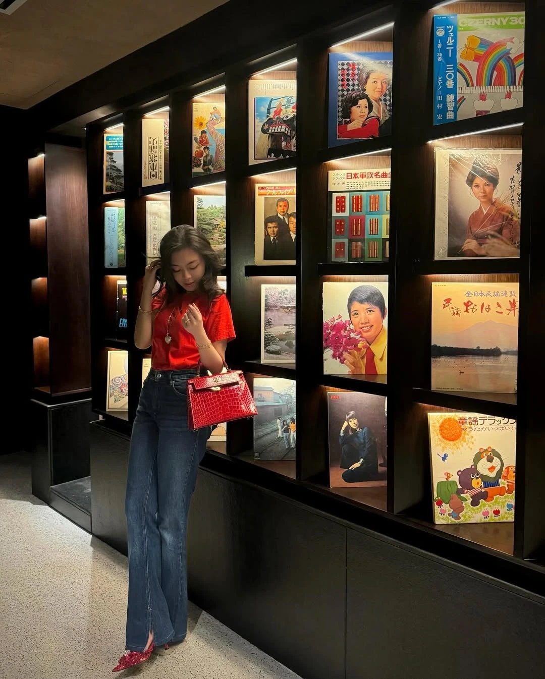 Tiểu thư Sài thành được khen biết cách khéo léo kết hợp túi hiệu với trang phục tạo nên tổng thể thanh lịch, sang trọng. Trong hình, chiếc túi da cá sấu của thương hiệu Fendi, có giá khoảng 50.000 USD, là một trong những mẫu túi cô yêu thích.
