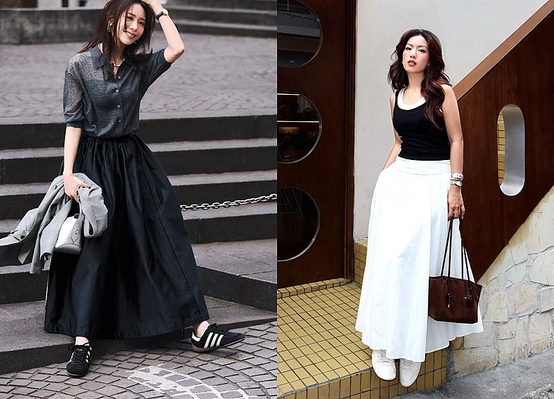 Tuy nhiên trong những ngày nắng oi ả đầu mùa hè, bản phối từ váy dài và giày thể thao lại là lựa chọn hợp lý và đầy phong cách.