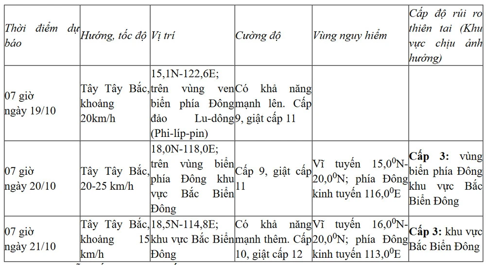 Dự báo, chiều tối 19/10, bão sẽ đi vào Biển Đông trở thành cơn bão số 12.
