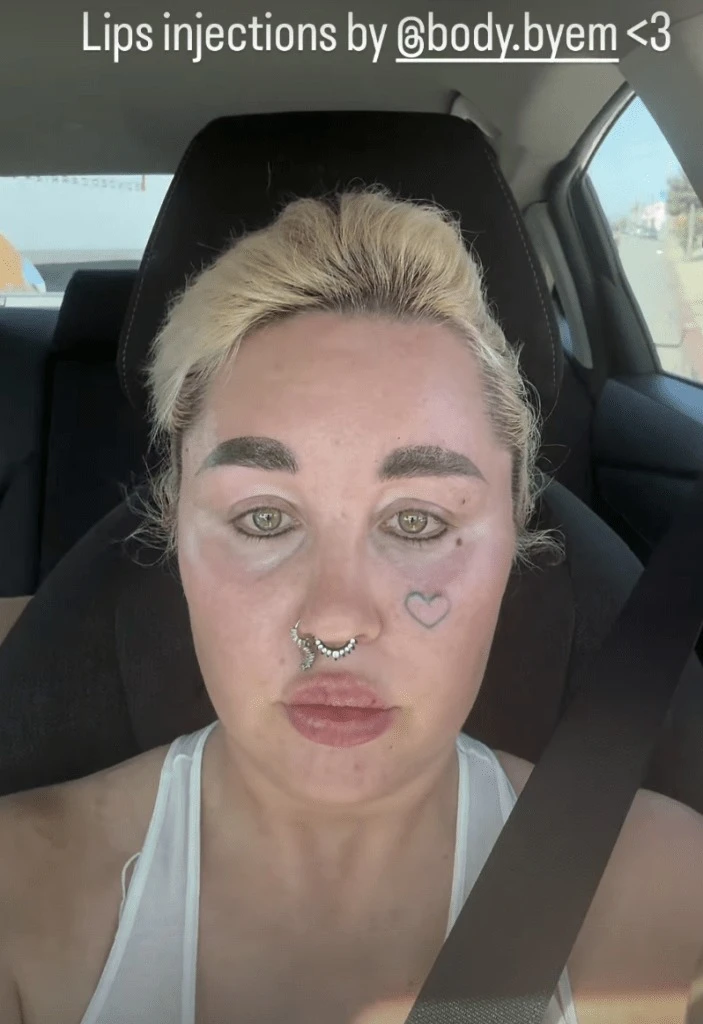 Trong bài đăng mới nhất, Amanda Bynes khoe rằng cô mới đi tiêm filler môi. Tuy nhiên thay vì nhận được những lời khen, cựu "nữ hoàng phim teen" lại khiến khán giả phát hoảng với ngoại hình khó nhận ra. Gương mặt cô già nua xuống sắc, quần mắt trũng sâu, còn xăm cả hình trái tim, đôi môi sưng phồng không ăn khớp chút nào với mặt.