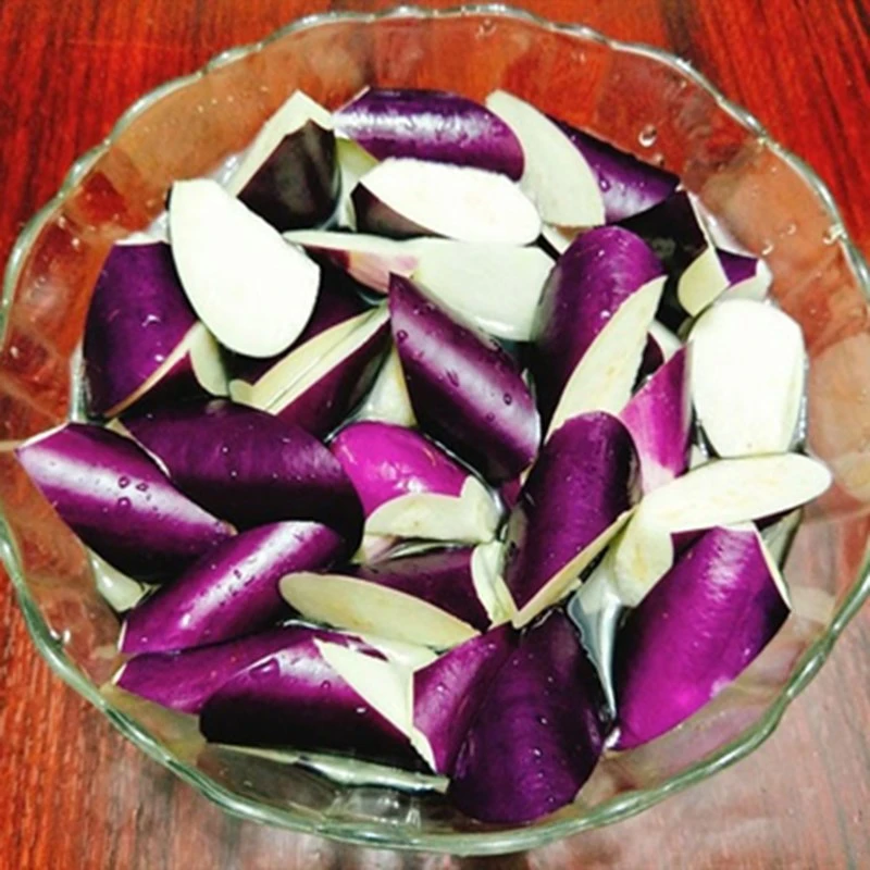 Bước 2: Thêm nước sôi để ngập nguyên liệu, nấu trong nồi áp suất trong 20 phút hoặc trong nồi đất nung khoảng 30-35 phút. Trong lúc nấu sườn, bạn sơ chế cà tím. Rửa sạch rồi cắt cà tím thành các miếng có độ dày vừa phải.