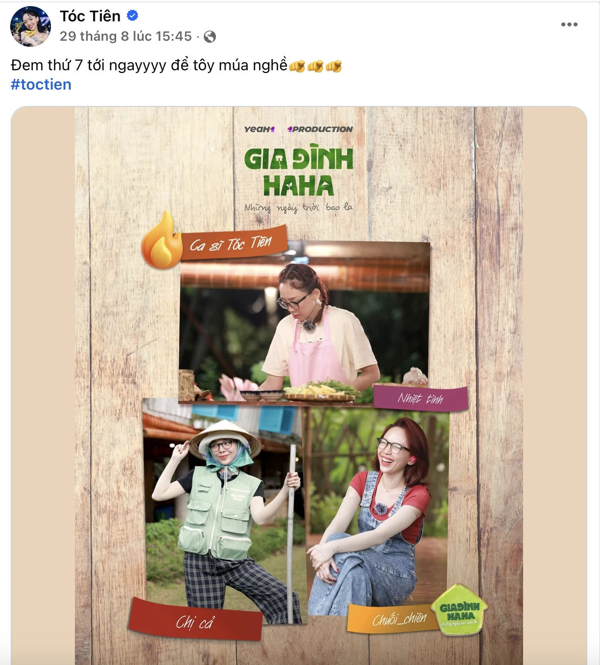 Thực tế, Tóc Tiên đã có rất nhiều bài đăng trên fanpage để chia sẻ về hành trình ở Gia đình Haha