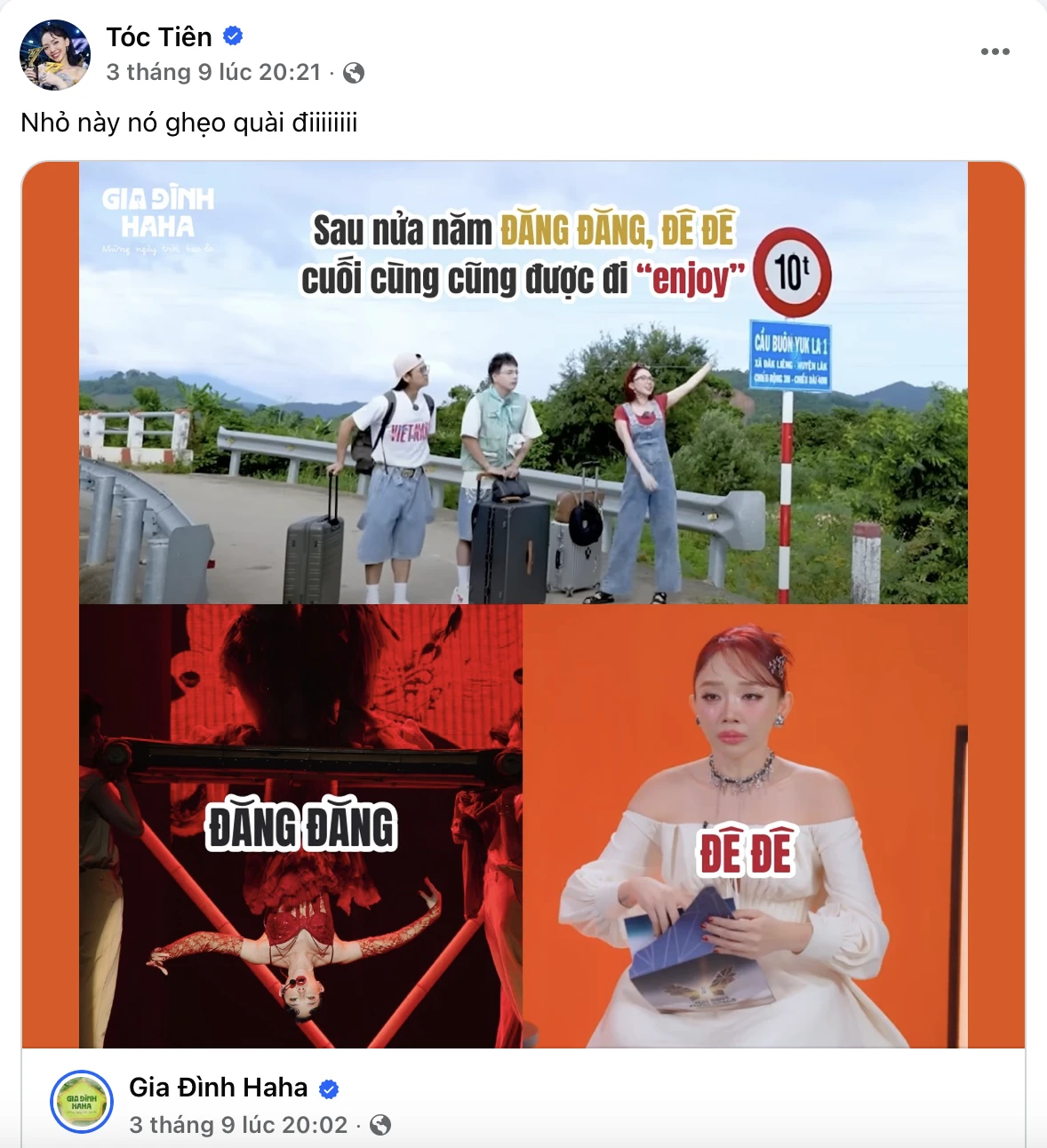 Thời gian gần đây, Tóc Tiên liên tục trở thành nhân vật của loạt bàn tán, tranh cãi trái chiều trên MXH. Sau loạt "chiến thuật" gây xôn xao ở Tân Binh Toàn Năng hay bị soi dấu hiệu lạ với Touliver thì mới đây Tóc Tiên lại dính vào drama mới. Cụ thể, nữ ca sĩ được công bố là khách mời chặng ở Tây Nguyên của chương trình truyền hình thực tế Gia đình Haha. Với sự vui vẻ, hoạt ngôn mà nhiều người từng thấy ở Tóc Tiên, cô trở thành "nhân tố" đáng được chờ đợi khi show lên sóng. Bản thân Tóc Tiên cũng thể hiện sự hào hứng khi đăng ảnh check in xác nhận là khách mời kèm 1 câu nói: "Đợt đó đi ngoan, ăn giỏi, chơi vui, ngủ sớm. Không biết lúc lên sóng có bị evil edit không nữa".