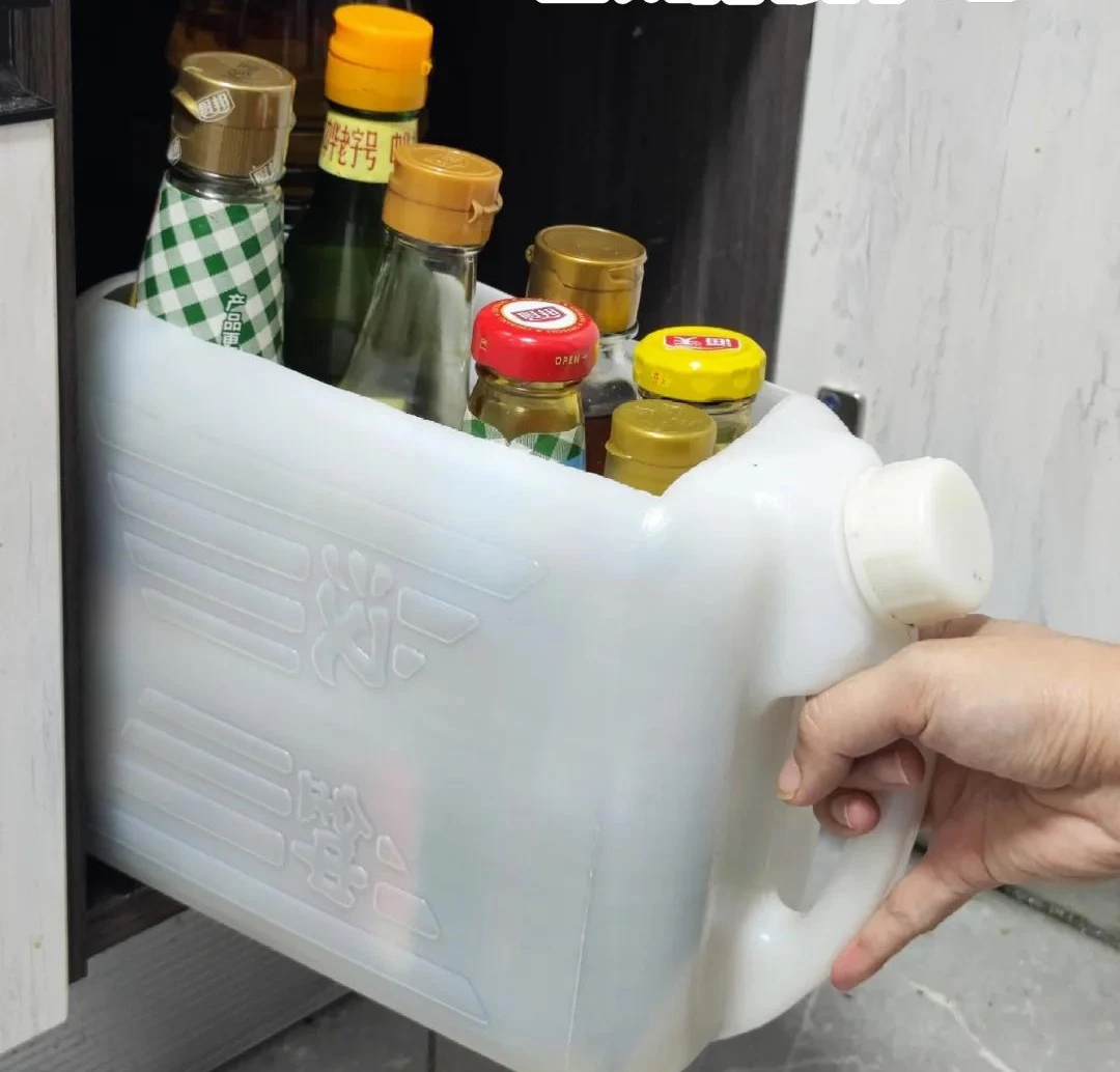 Chỉ với vài chai nhựa, tủ bếp đã gọn hơn hẳn.