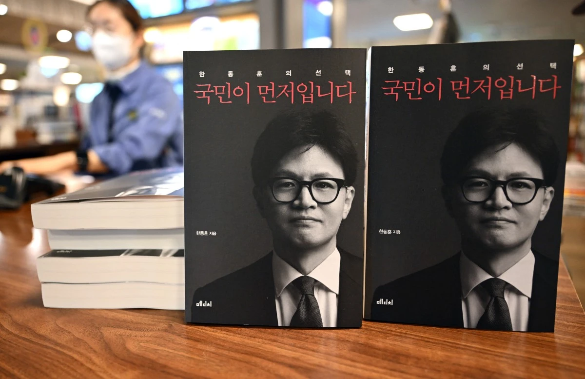 Quyển sách có tựa đề “The People First” của cựu Lãnh đạo đảng Quyền lực Nhân dân cầm quyền (PPP) của Hàn Quốc Han Dong-hoon được phát hành ngày 26.2 . ẢNH: AFP