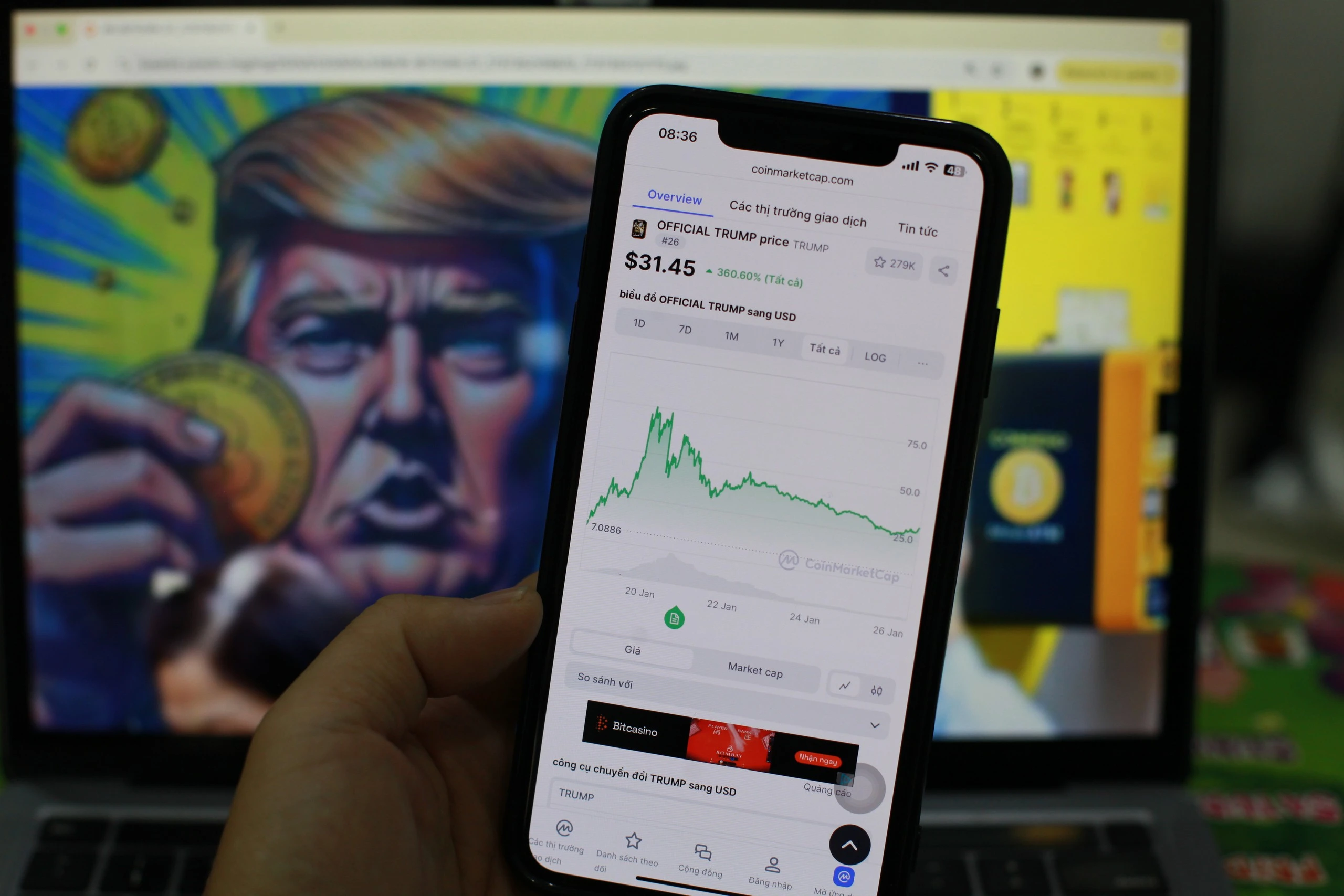 Biểu đồ giá memecoin TRUMP trước tranh vẽ Tổng thống Mỹ Donald Trump . ẢNH: KHƯƠNG NHA