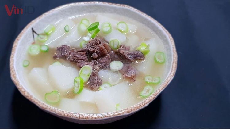 Món canh thịt bò kiểu Hàn Quốc nấu cùng củ cải cho thêm vị ngọt, thịt bò đậm đà kết hợp cùng nước súp thanh đạm, ngọt dịu của củ cải tạo nên hương vị khó quên.