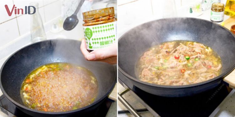 Nấu canh thịt bò cùng với sốt ớt chuông