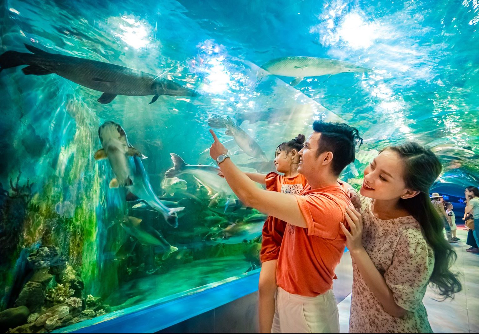 Ngoài ra, để con được tận mắt chứng kiến nàng tiên cá bơi lội, nhảy múa trong nước, các phụ huynh nhất định phải ghé thủy cung tại Thiên đường Bảo Sơn để thưởng thức màn trình diễn "Vũ khúc Thủy tiên". Đây cũng là hoạt động nghệ thuật mới, diễn ra vào chủ nhật hàng tuần để nâng cao trải nghiệm cho du khách trong mùa hè này.