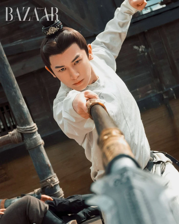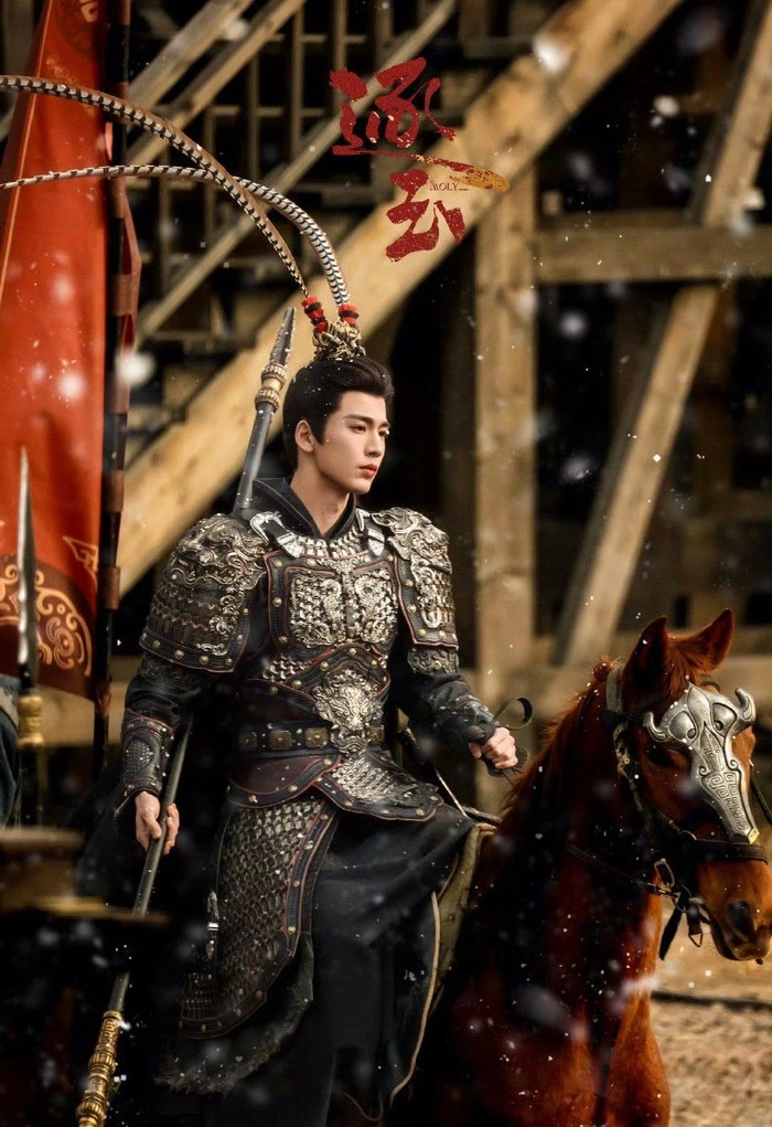 Lư Lăng Phong với cây trường thương điêu luyện, khí chất cương trực của một vị tướng tài ba. – Ảnh: Harper’s Bazaar