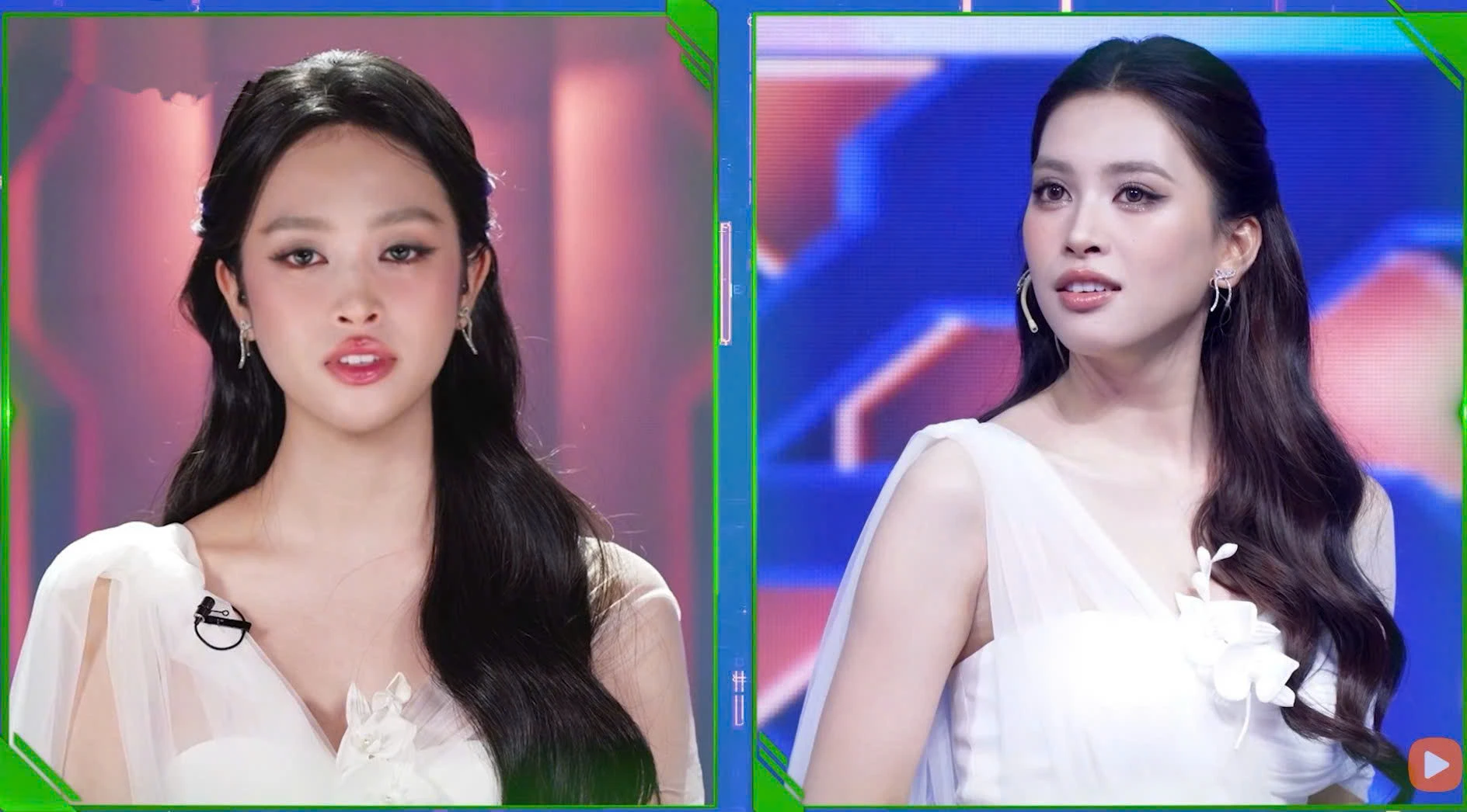 Sau tất cả những dự đoán, cánh cửa mở ra và hé lộ song trùng lần này chính là Hoa hậu Thanh Thủy, khiến dàn khách mời bất ngờ. Tiểu Vy chia sẻ trước đó, vì đàn em tiết lộ đang rất bận rộn nên cô không nghi ngờ gì.