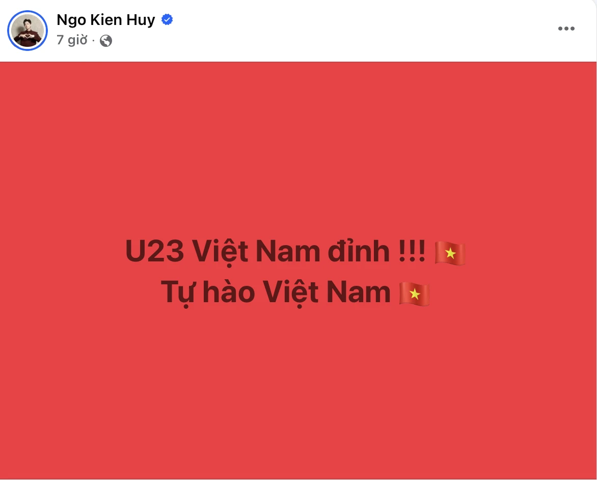 Không ít nghệ sĩ khác cũng chọn cách thể hiện tình yêu bóng đá theo cách riêng: người đăng story nền cờ đỏ sao vàng, người viết lời chúc chiến thắng, người đơn giản chỉ chia sẻ cảm xúc hồi hộp trước trận cầu quan trọng. Dù mỗi bài đăng mang một sắc thái khác nhau, tất cả đều chung một tinh thần hướng về U23 Việt Nam trong thời khắc then chốt của giải đấu.