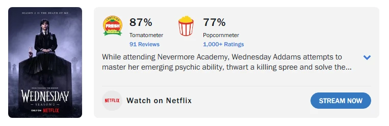 Phần thứ hai của Wednesday 2 đã chính thức ra mắt vào ngày 3/9 trên nền tảng Netflix, khép lại một mùa phim đầy thành công cho siêu phẩm kinh dị của đạo diễn Tim Burton. Phần phim này nhanh chóng đứng đầu bảng xếp hạng Netflix tại nhiều quốc gia trên toàn cầu, đồng thời được giới chuyên môn đánh giá cao, nhận về 87% cà chua tươi trên Rotten Tomatoes, cao hơn nhiều so với phần đầu tiên.