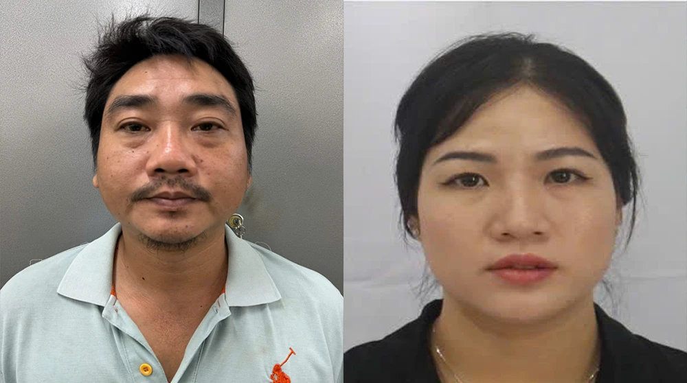 Hai đối tượng có vai trò chủ chốt trong đường dây thịt giả gồm Nguyễn Phi Long và Trần Thị Vạn Phước. Ảnh: CA