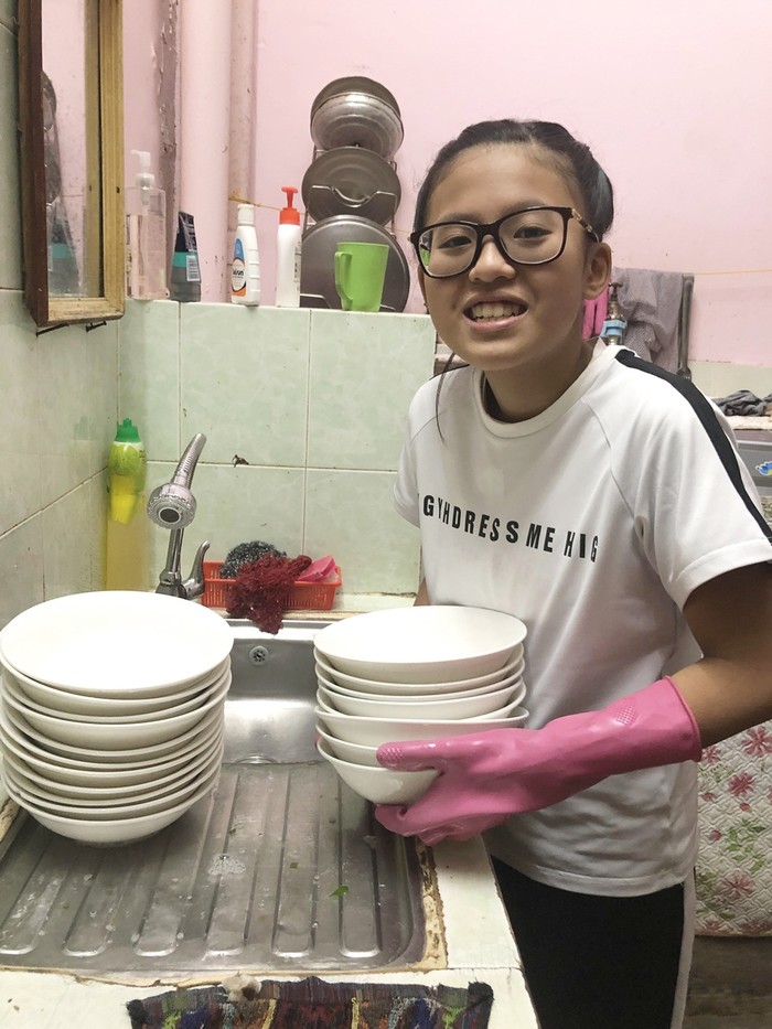 Trò cưng Hương Giang – Bảo Hân mang tạp dề, siêng năng ‘chạy bàn’ bán bún riêu phụ giúp bố mẹ