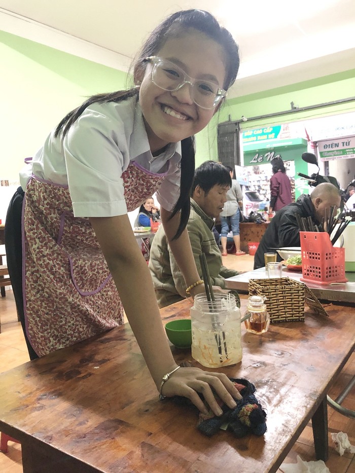 Học trò HLV Hương Giang – Bảo Hân rất đáng khen ngợi khi chăm chỉ phụ giúp bố mẹ chạy bàn quán bún riêu gia truyền tại Đà Lạt.