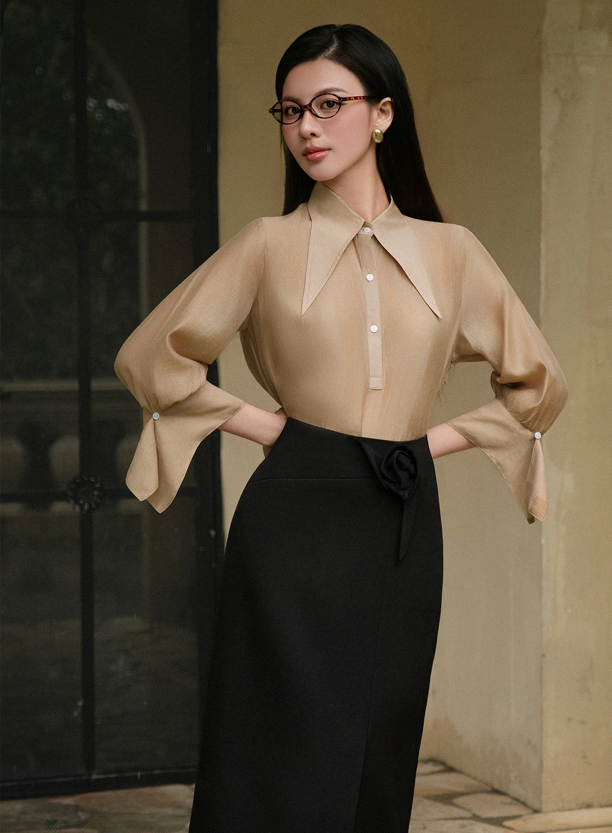 Áo sơ mi cổ đức 'tái sinh' vẻ ngoài thanh lịch chuẩn quý cô