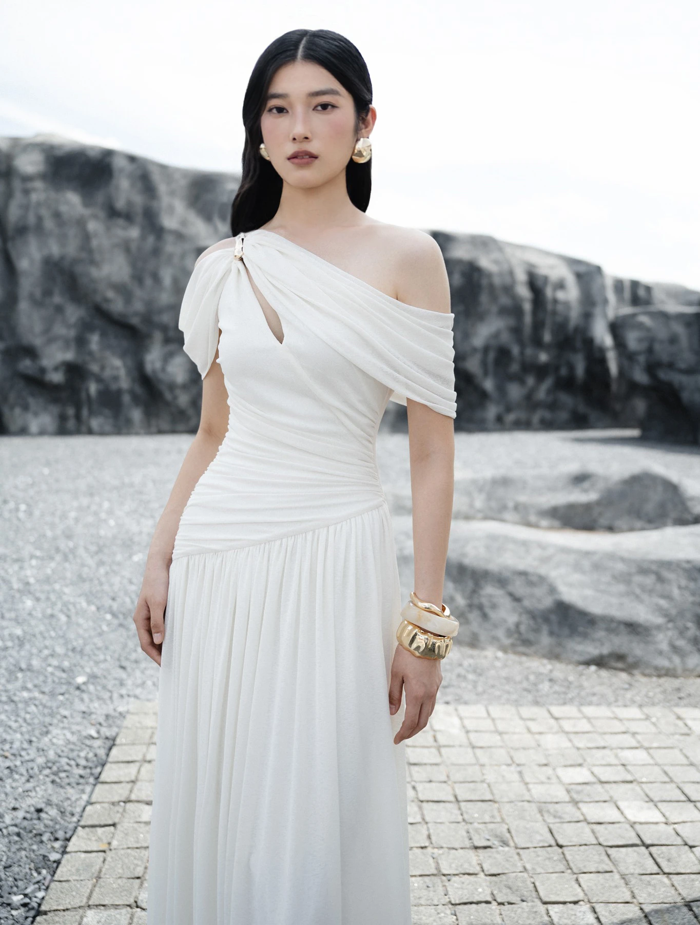 Gam màu trắng tinh khiết, mềm mại và nữ tính được dày công chế tác, đặt để tinh tế nhằm tôn đường cong cùng thần thái sang trọng, quý phái của nàng