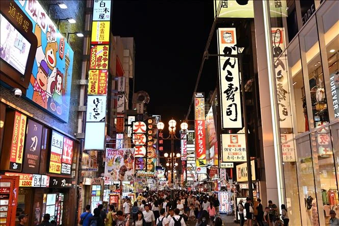 Du khách mua sắm tại phố Dotombodori ở Osaka, Nhật Bản. Ảnh: AFP/TTXVN