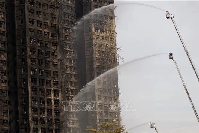 Hiện trường vụ cháy chung cư ở Hong Kong (Trung Quốc) ngày 27/11/2025. Ảnh: THX/TTXVN