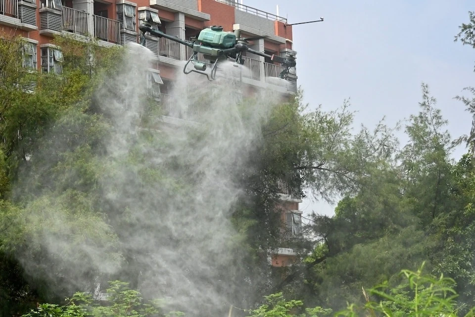 Máy bay không người lái phun thuốc diệt côn trùng quanh các tuyến phố, khu dân cư tại Trung Quốc (Ảnh: Getty).