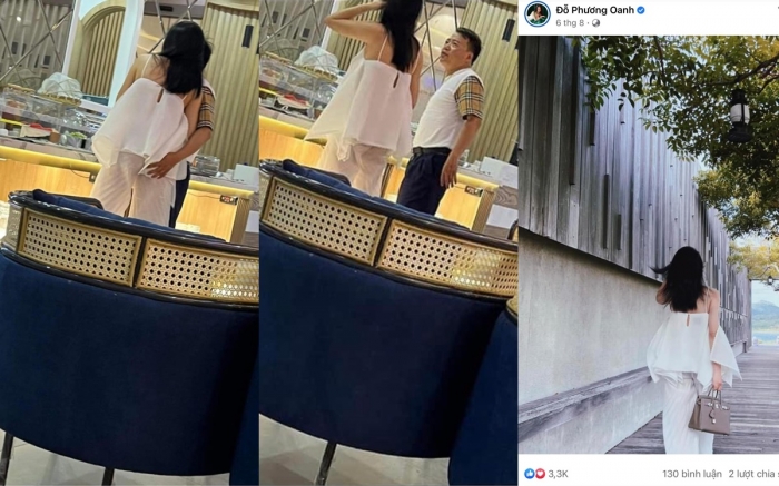 Trong loạt ảnh này, cặp đôi trên liên tục có những hình ảnh tình tứ ở chỗ đông người, thậm chí là có hành động nhạy cảm. Đáng nói, trong 1 bức ảnh chụp ở góc riêng, hình ảnh cô gái trong bức ảnh rất giống nữ diễn viên Phương Oanh. Chưa dừng ở đó, bộ trang phục của cô gái trong loạt ảnh này giống hệt với một bức ảnh trên trang cá nhân của nữ diễn viên.