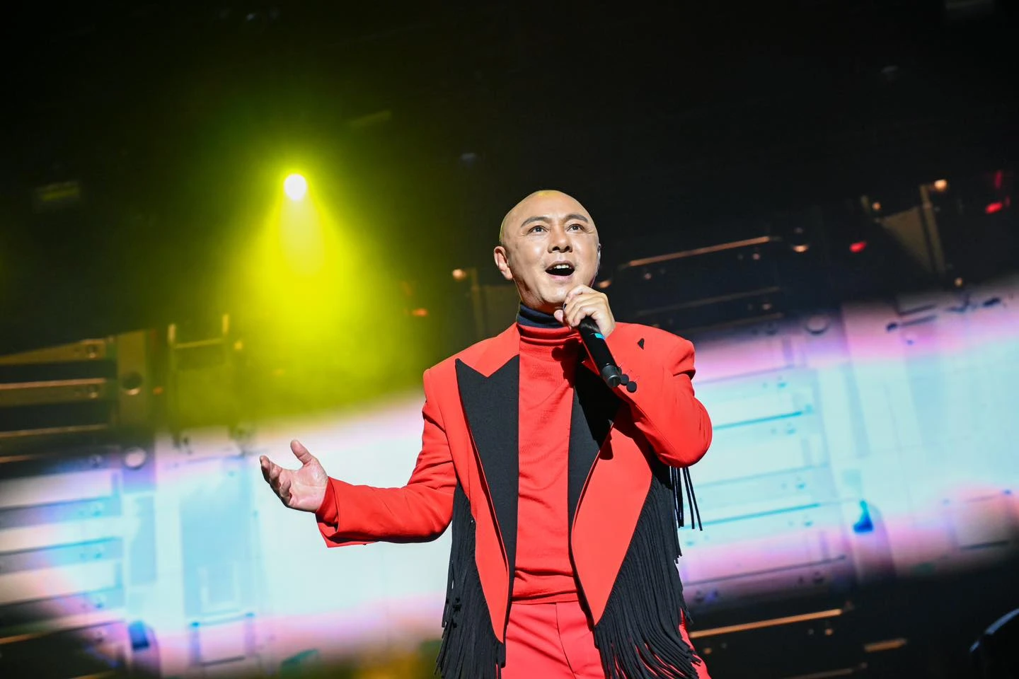 Sau hơn 40 năm hoạt động nghệ thuật, nam nghệ sĩ vẫn chứng minh sức hút khi trở lại sân khấu với những đêm diễn “cháy vé” tại Hồng Kông . Ảnh: Weibo Trương Vệ Kiện