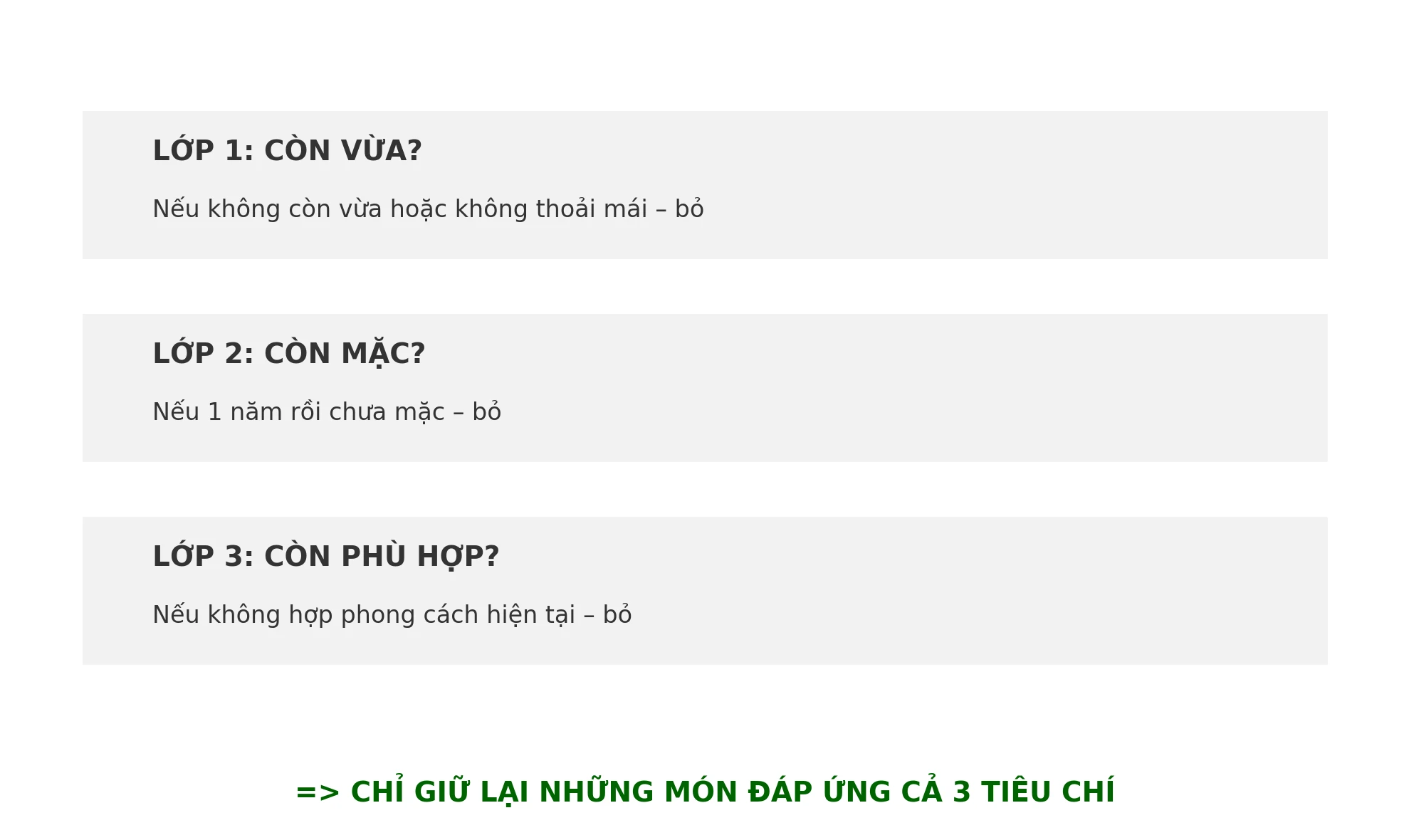 1. Quần áo không còn vừa nữa – giữ lại chỉ khiến bạn thêm áp lực