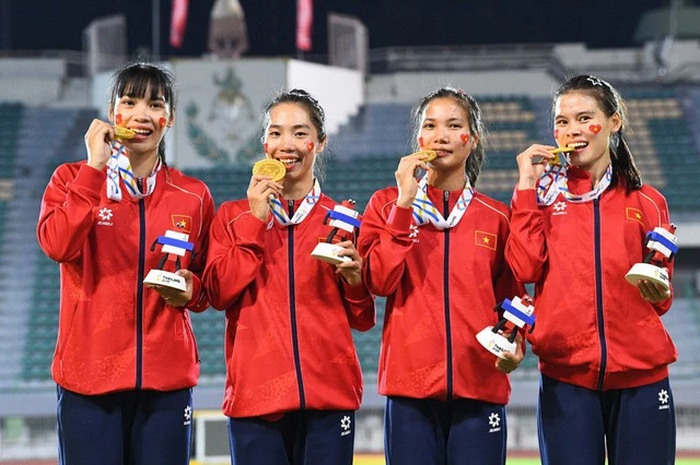 VĐV Hoàng Thị Minh Hạnh, Nguyễn Thị Hằng, Lê Thị Tuyết Mai, và Nguyễn Thị Ngọc xuất sắc giành HCV SEA Games 33