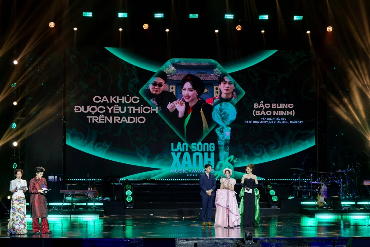 Hòa Minzy cùng ê-kíp nhận giải với ca khúc “Bắc Bling (Bắc Ninh)” – sản phẩm thắng lớn tại Làn Sóng Xanh 2025.