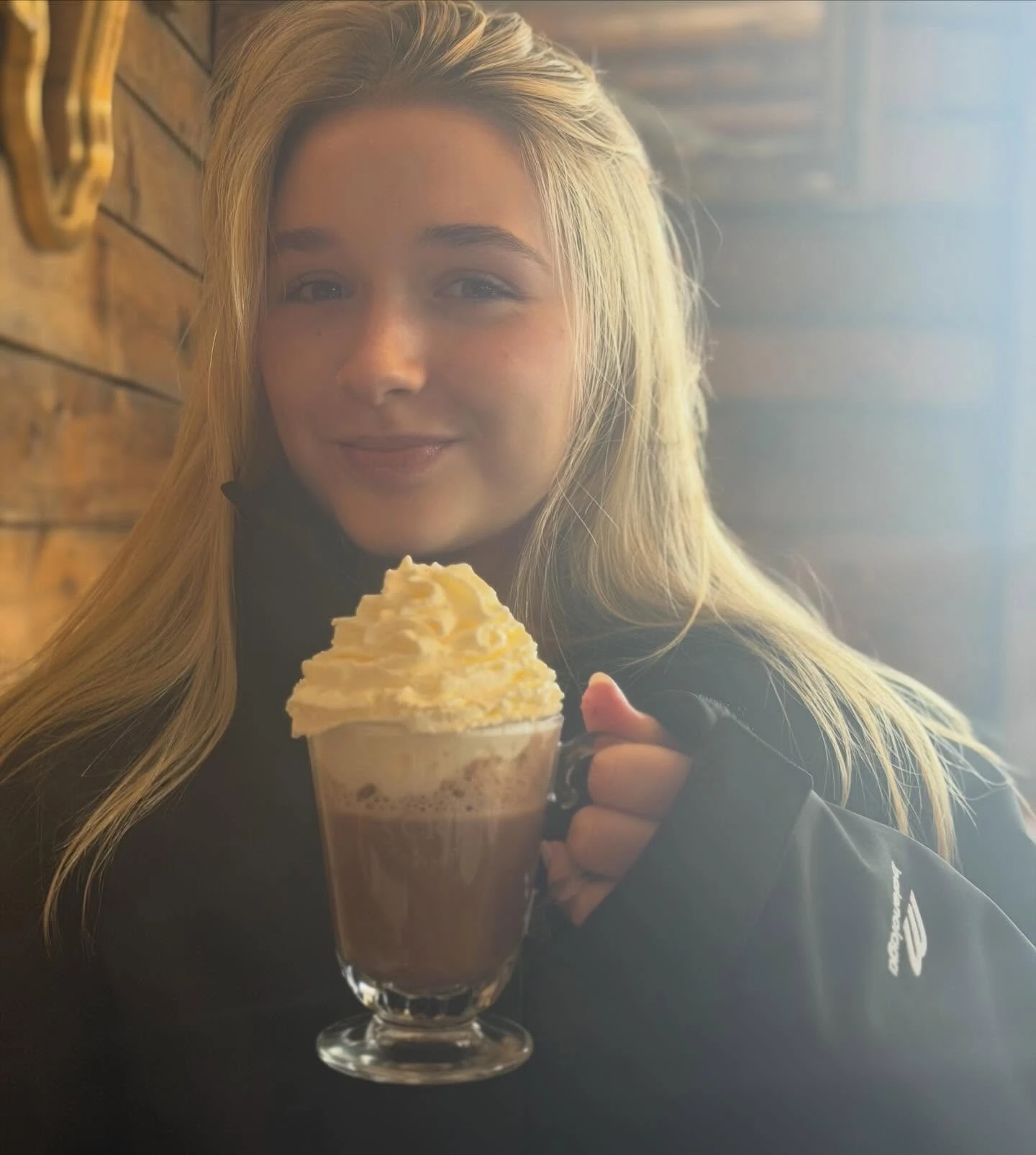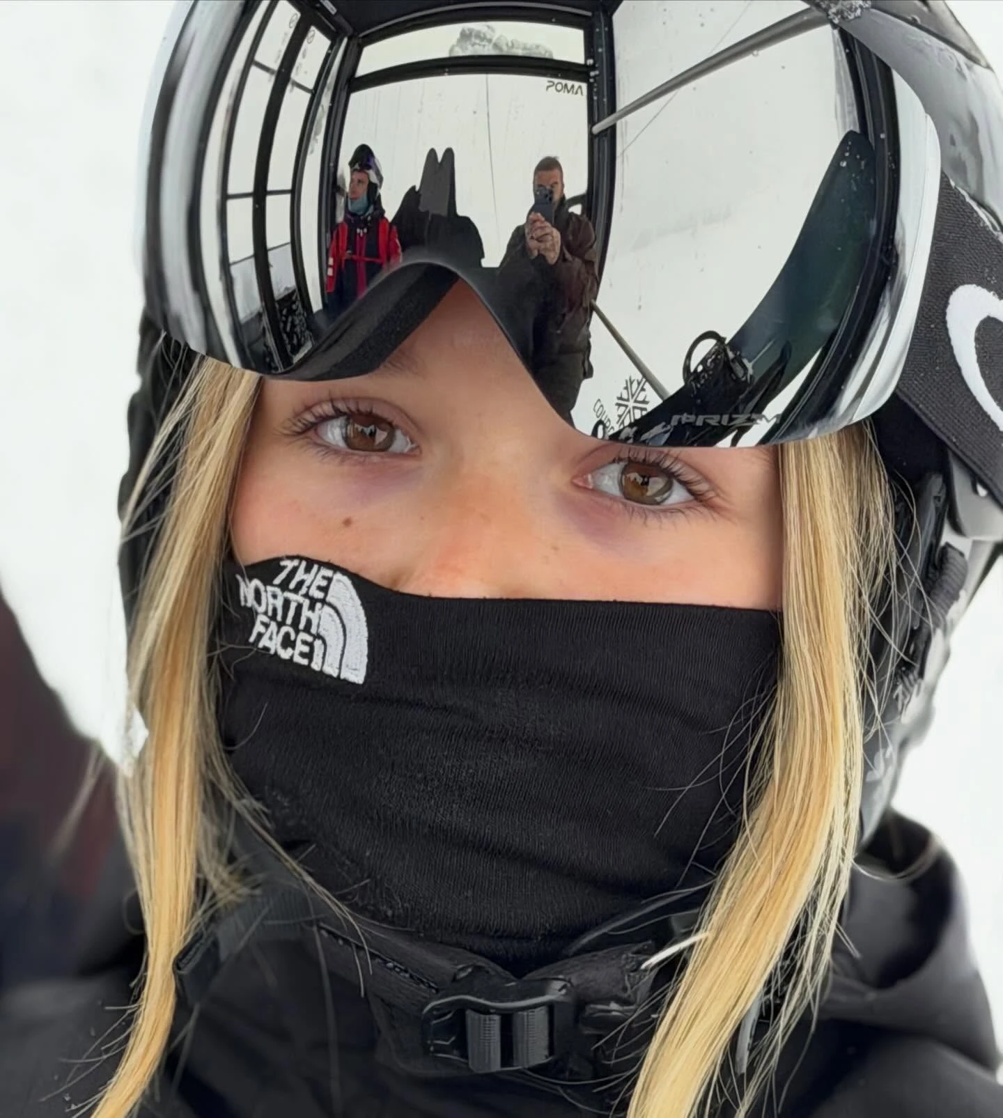 Trong những bức ảnh selfie giữa nền tuyết trắng, Harper gây chú ý bởi gương mặt gần như để mộc hoàn toàn, làn da trong trẻo đúng tuổi thiếu nữ. Không son phấn cầu kỳ, không váy áo công chúa, cô bé 14 tuổi diện nguyên set đồ trượt tuyết đen cá tính, kết hợp mũ bảo hộ đồng bộ và kính Oakley, trông vừa năng động vừa phong cách.