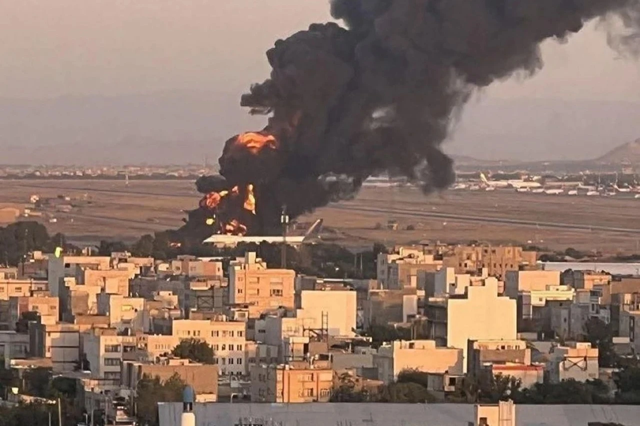 Khói bốc lên ở sân bay Mashhad của Iran sau cuộc không kích của Israel hồi tháng 6/2025 (Ảnh: Mehr).