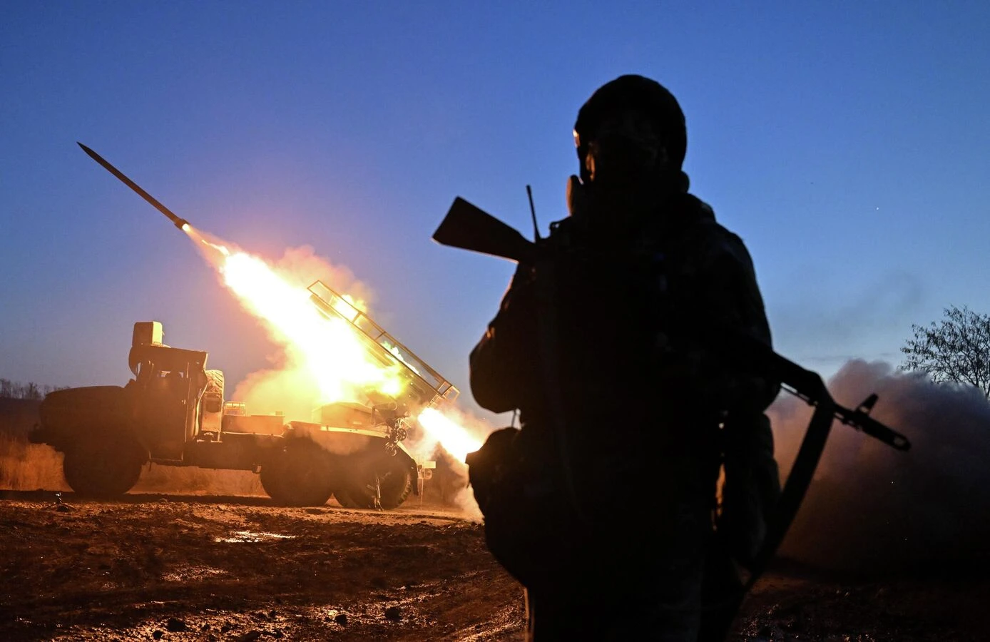 Binh sĩ Nga thuộc Cụm tác chiến Trung tâm gần Kranoarmeysk (Pokroysk) phóng hệ thống pháo phản lực Grad vào vị trí của đối phương. Ảnh: Sputnik