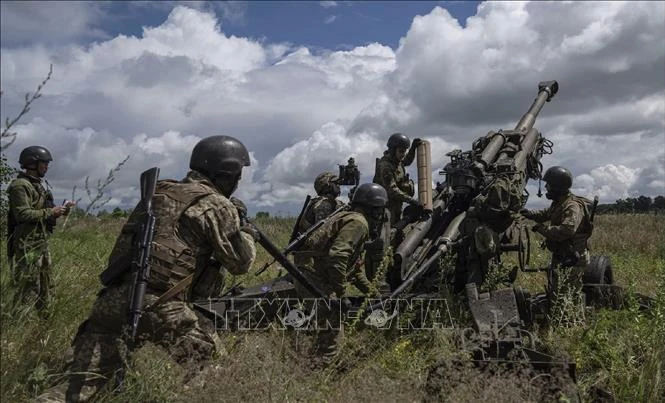 Binh sĩ Ukraine sử dụng lựu pháo M777 của Mỹ. Ảnh tư liệu: AP/TTXVN