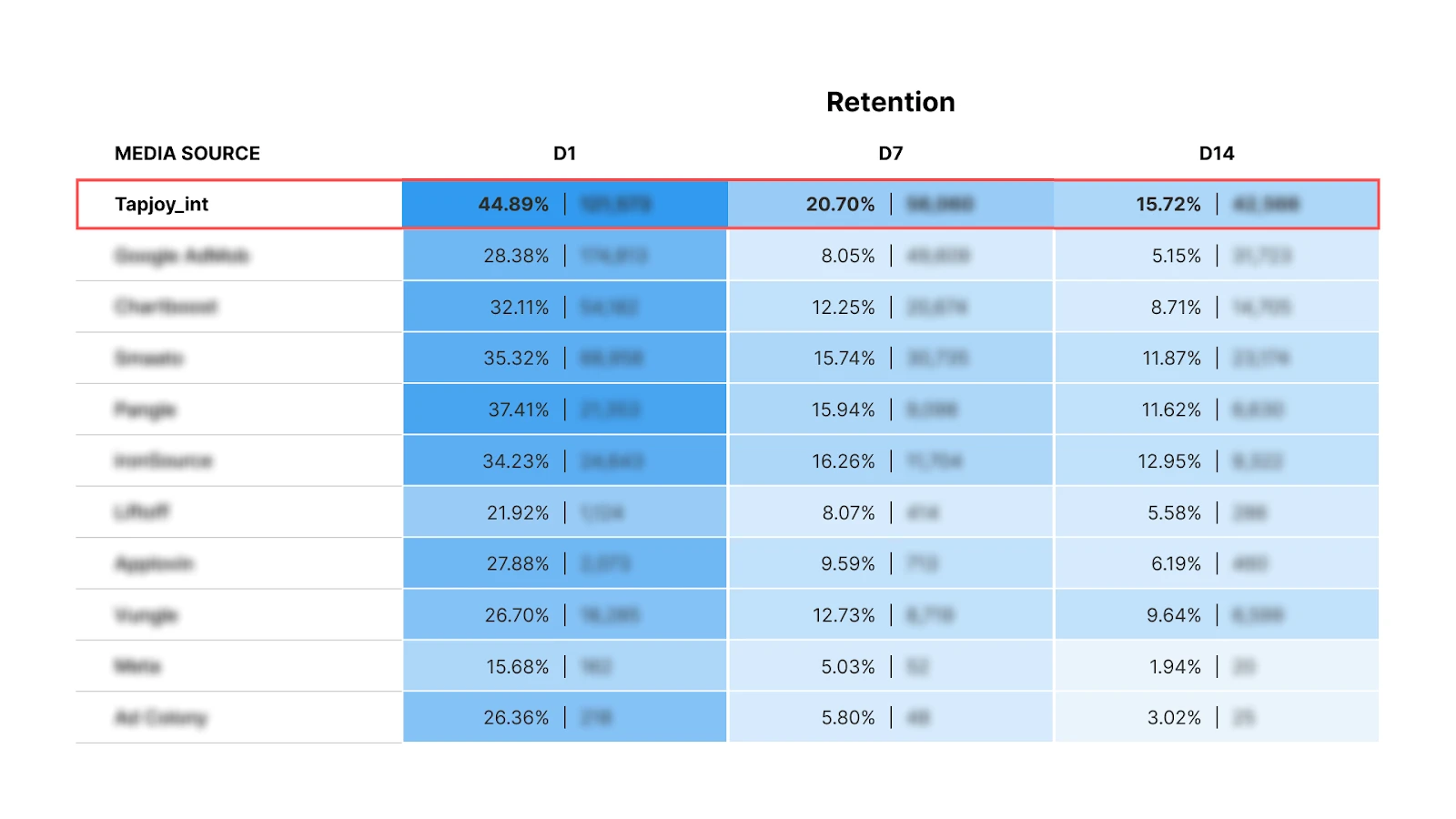 Thực hiện theo các đề xuất này, trong vòng chưa đầy một năm, Falcon Games đã mở rộng quy mô hoạt động Tapjoy của mình từ 0 lên 119 ưu đãi đang hoạt động trên 38 trò chơi và 122 khu vực địa lý*. Mạng lưới Tapjoy kể từ đó đã trở thành một trong những kênh UA hàng đầu của Falcon Games, được ghi nhận trong nội bộ vì đã mang lại những người dùng chất lượng cao với tỷ lệ giữ chân cao hơn 20% so với các mạng lưới video khác. Cuối cùng, Tapjoy offerwall đã giúp Falcon Games gia tăng doanh thu đáng kể trên các tựa game của mình.