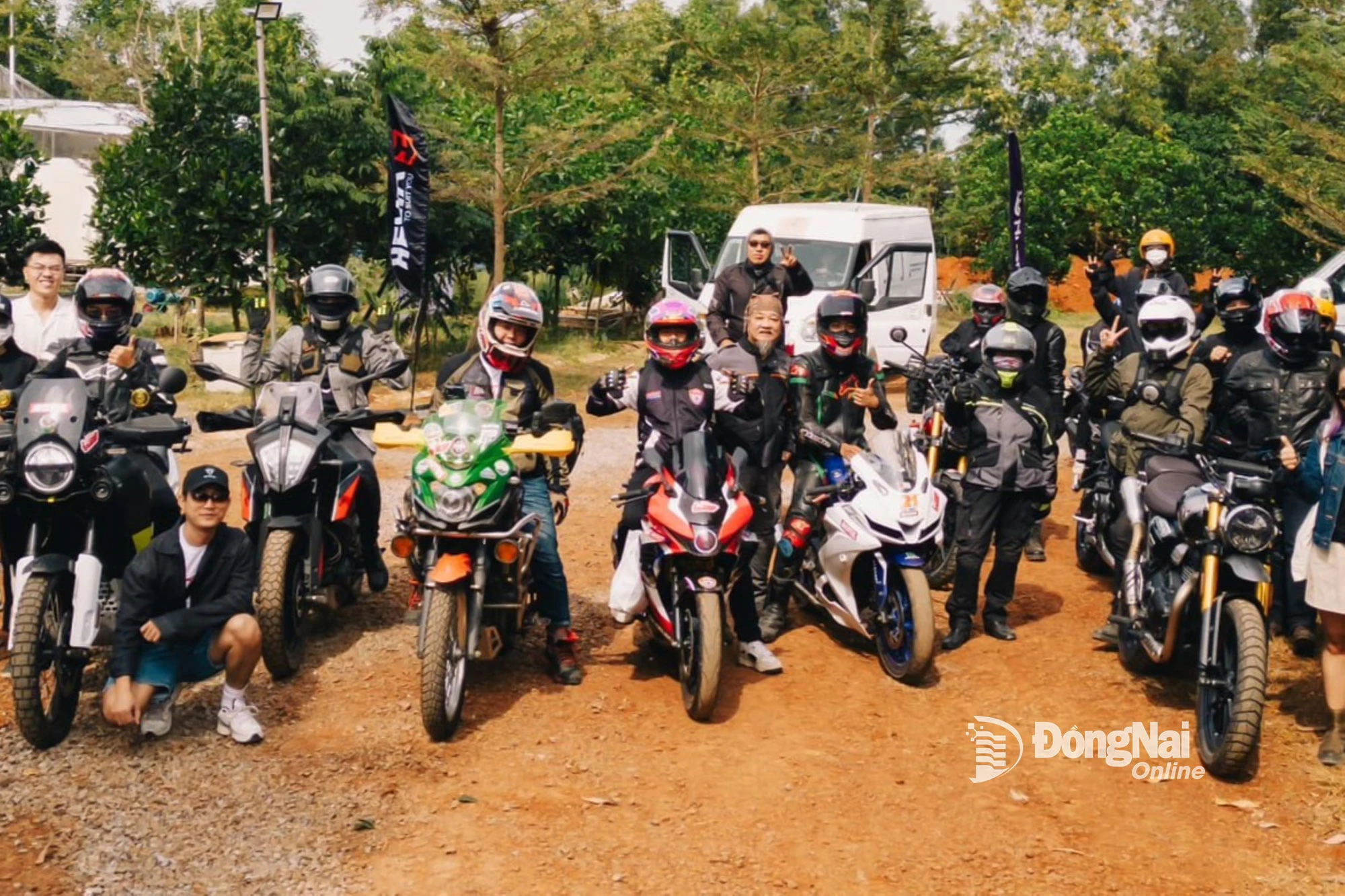 Nhóm bạn trẻ ở Đồng Nai và Thành phố Hồ Chí Minh trên hành trình “phượt” về điểm cắm trại tại Đồng Nai với phương tiện đầy đủ đồ bảo hộ. |