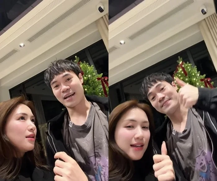 Nữ ca sĩ 9x nói: "Toàn ơi đi ra đây bảo, đi ra đây nhanh lên, không thể nào giấu cộng đồng mạng nữa rồi. Bọn mình không giấu cộng đồng mạng nữa. Bây giờ bọn mình lần đầu nói thẳng luôn cho mọi người biết".