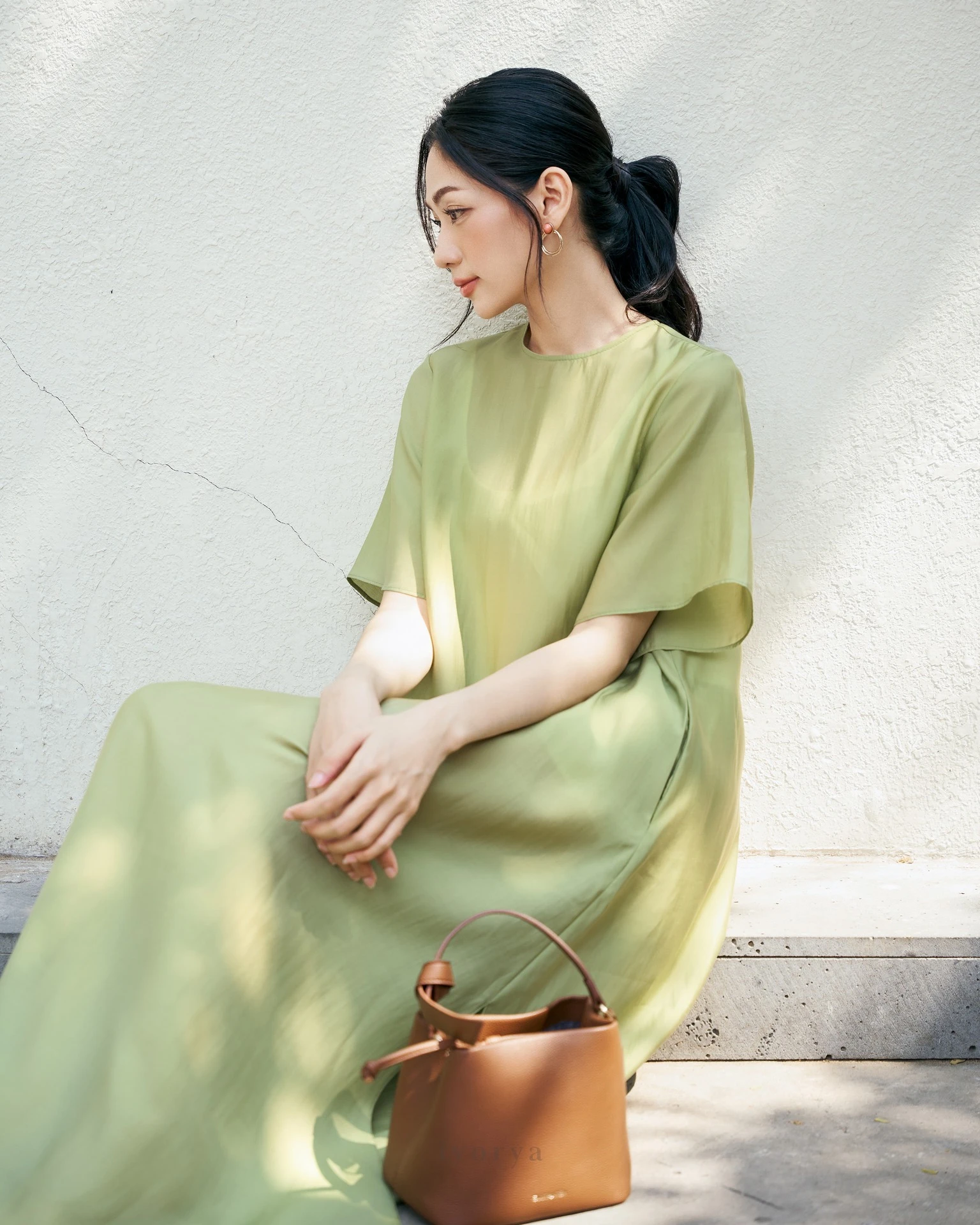 Màu vàng bơ, xanh cốm, beige… của váy suông có thể kết hợp với hầu hết các món đồ phụ kiện giày và túi mang gam màu trung tính đặc trưng của mùa thu đông