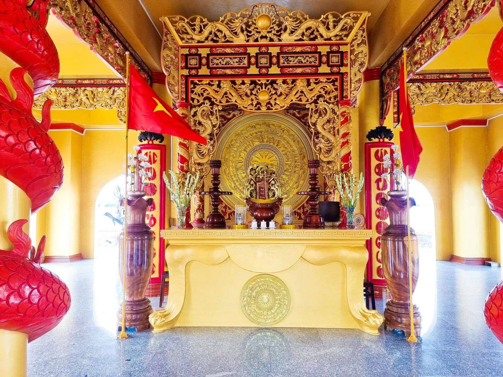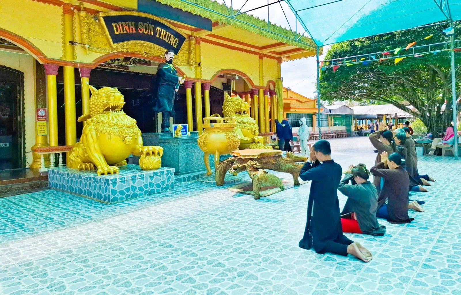 Quần thể dinh Sơn Trung hiện có ba công trình thờ tự lớn, gồm đền thờ Vua Hùng, đền thờ Quản Cơ Trần Văn Thành và đền thờ bà Nguyễn Thị Thạnh (vợ đức Quản Cơ). Ảnh: Trần Hoàng Vân Hùng