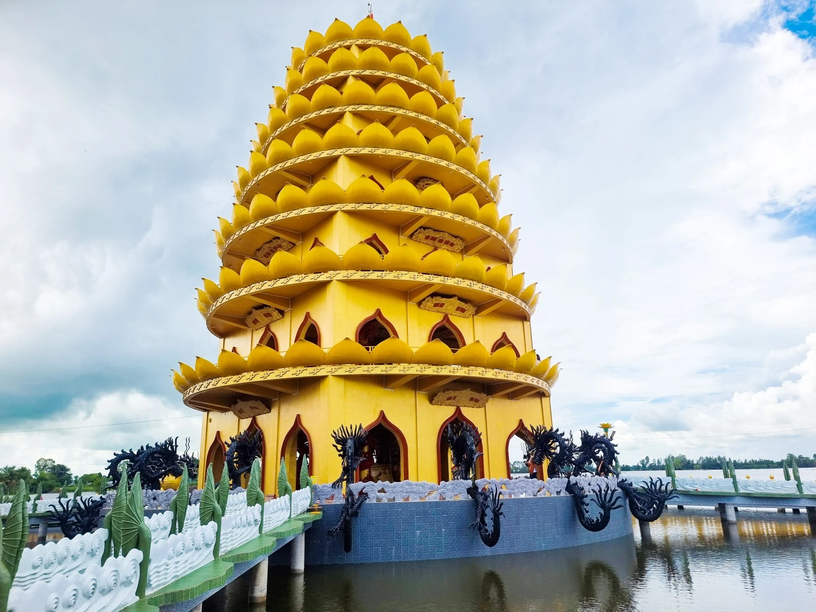 Ấn tượng nhất là tòa tháp 7 tầng cách điệu đóa sen vươn lên giữa trời xanh. Mỗi tầng đều có thờ các bậc thủy tổ, những vị anh hùng dân tộc,.như: Vua Hùng, Trần Hưng Đạo, Trần Nhân Tông, Quang Trung… Du khách vừa vãn cảnh vừa hiểu thêm lịch sử, tri ân các bậc tiền nhân dựng nước và giữ nước.
