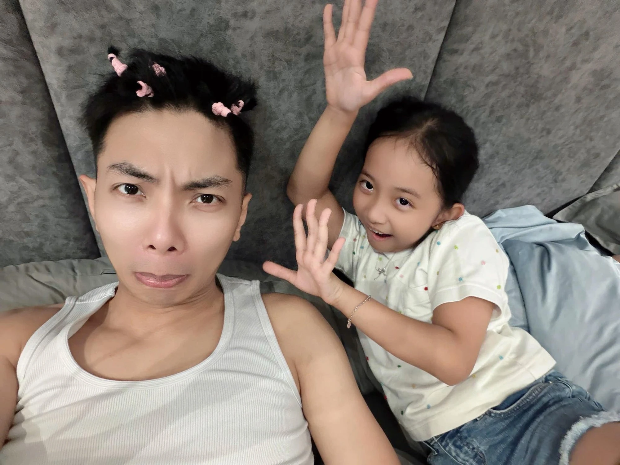 Không dừng lại ở đó, Khánh Thi còn chia sẻ thêm khoảnh khắc Phan Hiển bị hai con "troll" ngay trên giường: tóc buộc chi chít kẹp hồng, biểu cảm khổ sở nhưng vẫn cười bất lực. Bên cạnh, cô con gái Anna Vương Diễm hào hứng giơ tay tạo dáng như vừa hoàn thành một "tác phẩm nghệ thuật" trên đầu bố. Hình ảnh đúng chuẩn: ông bố ba con bị chiếm quyền điều khiển hoàn toàn bởi nàng công chúa nhỏ.