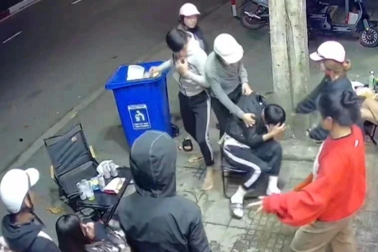 Nhóm đối tượng ra tay đánh dã man khiến một nam sinh tử vong (Ảnh: Cắt từ clip).