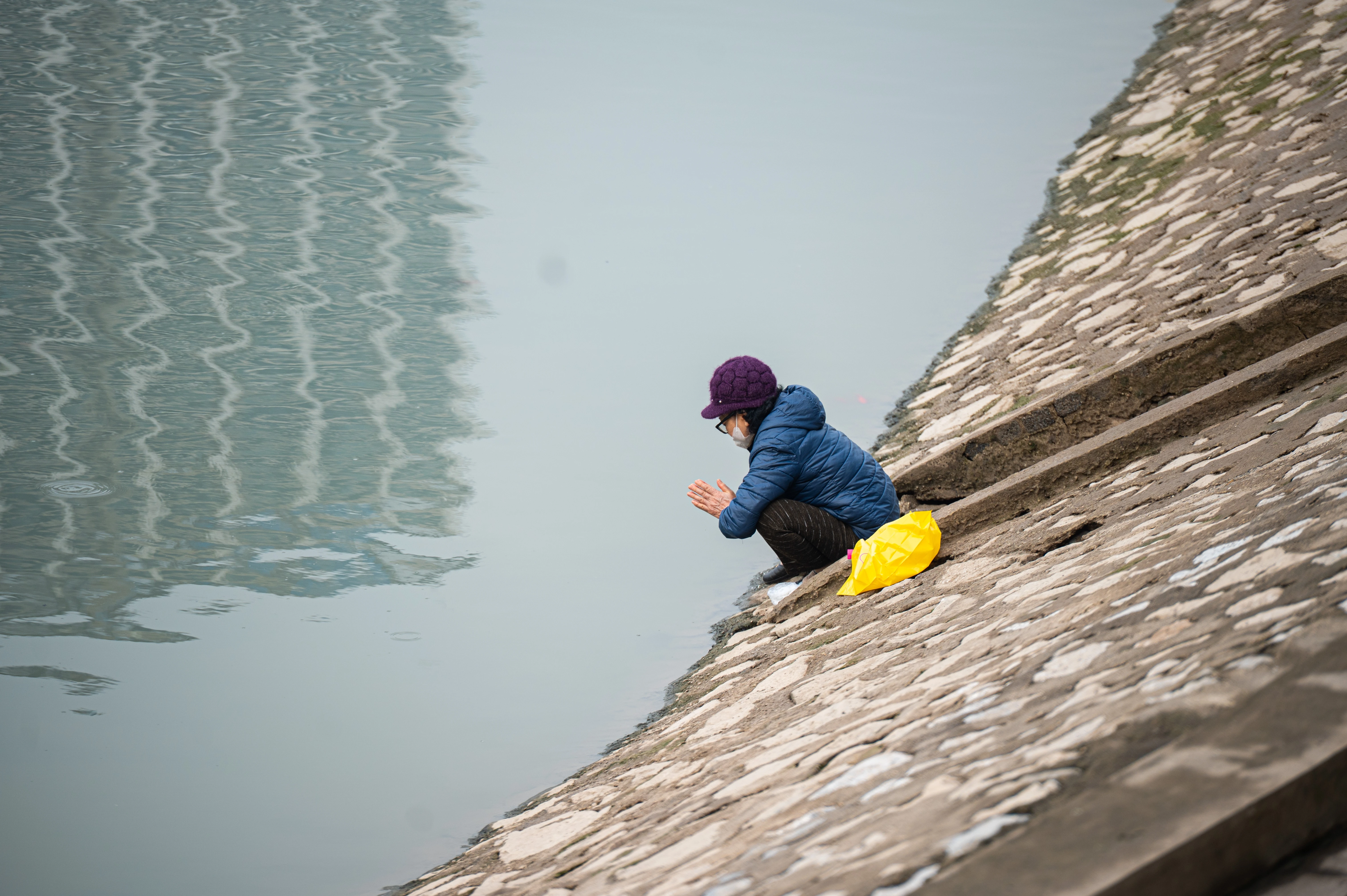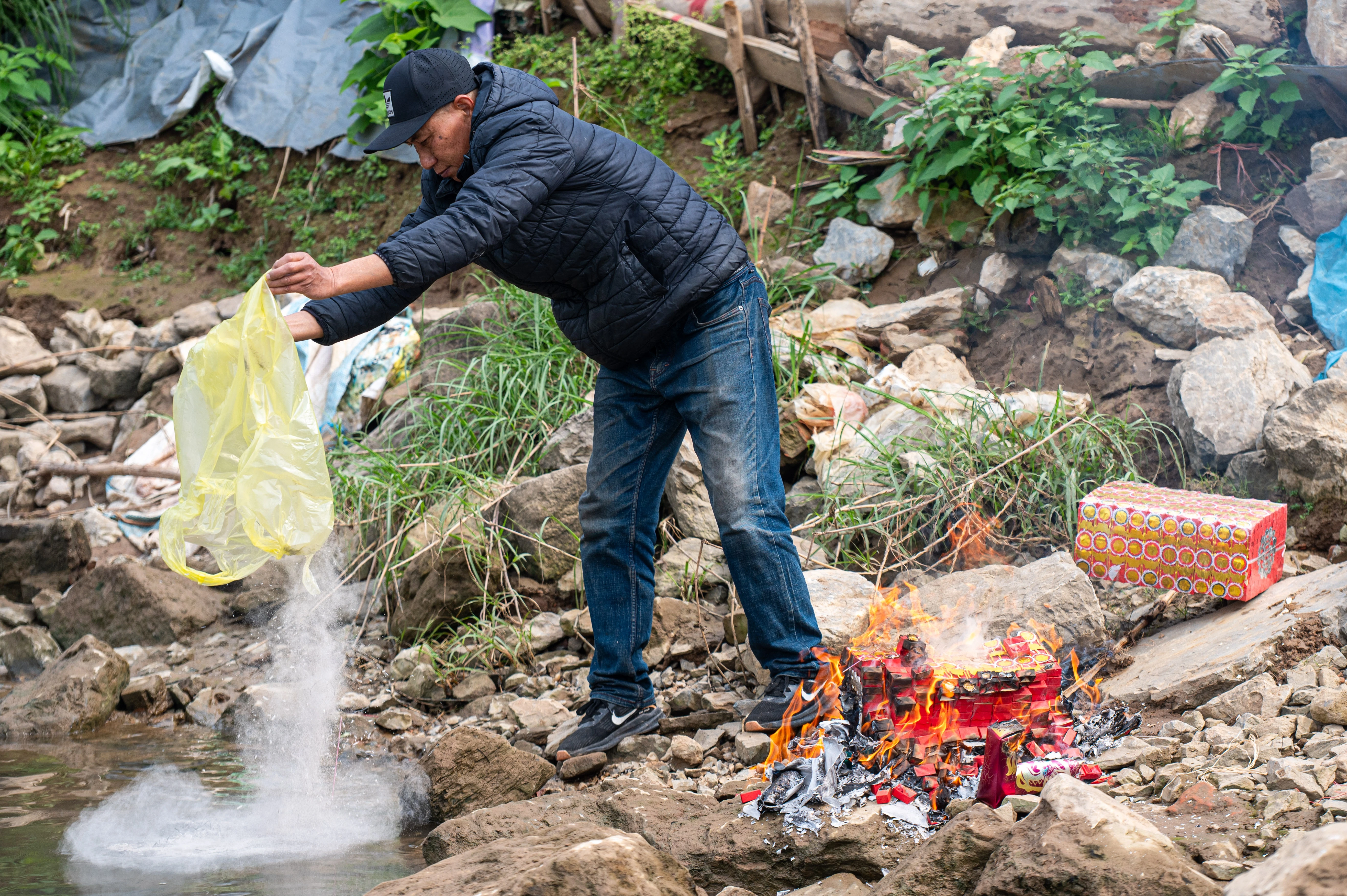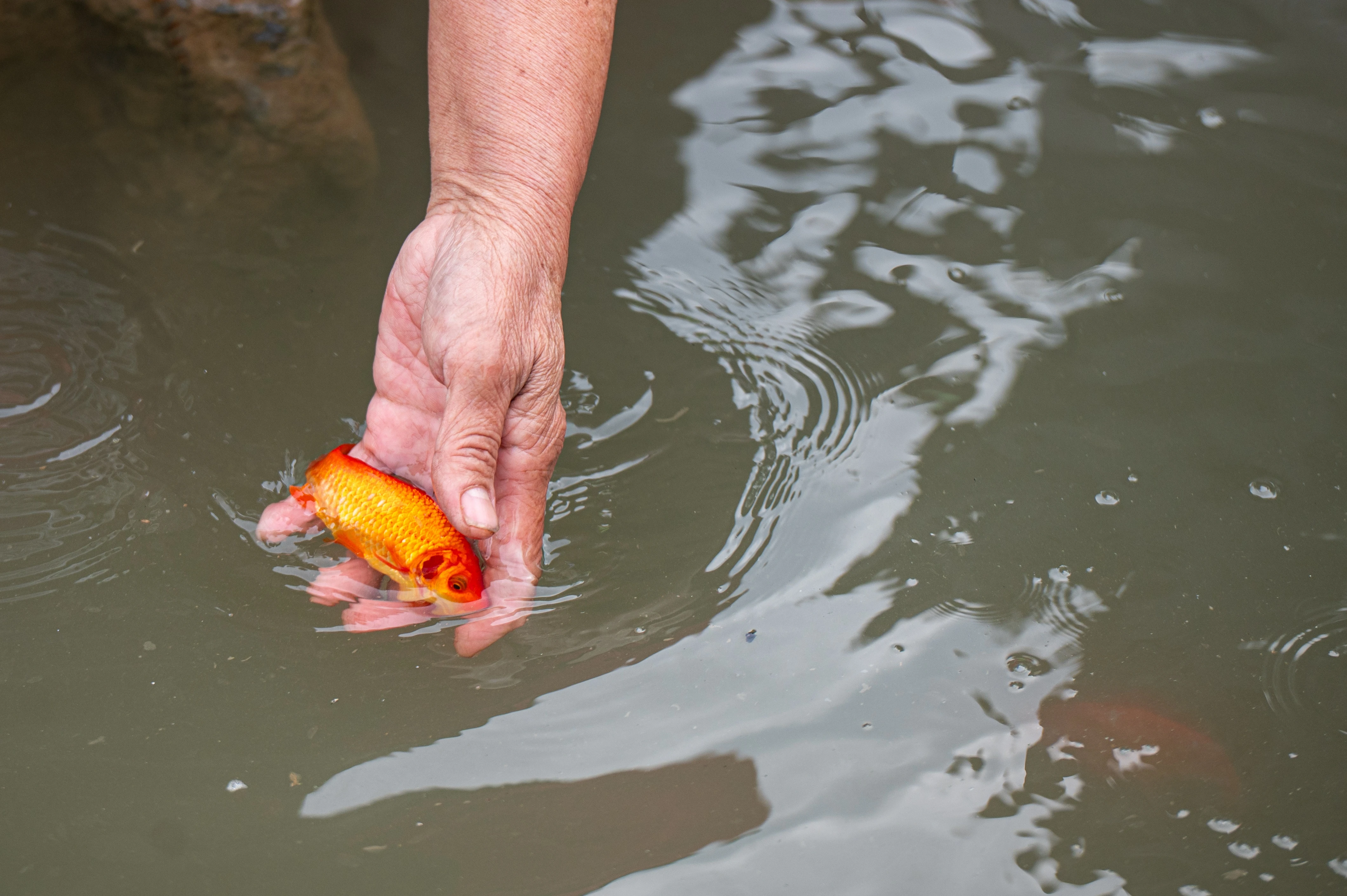 Ngán ngẩm nam thanh niên thả cá phóng sinh thả luôn vàng mã, túi ni lông