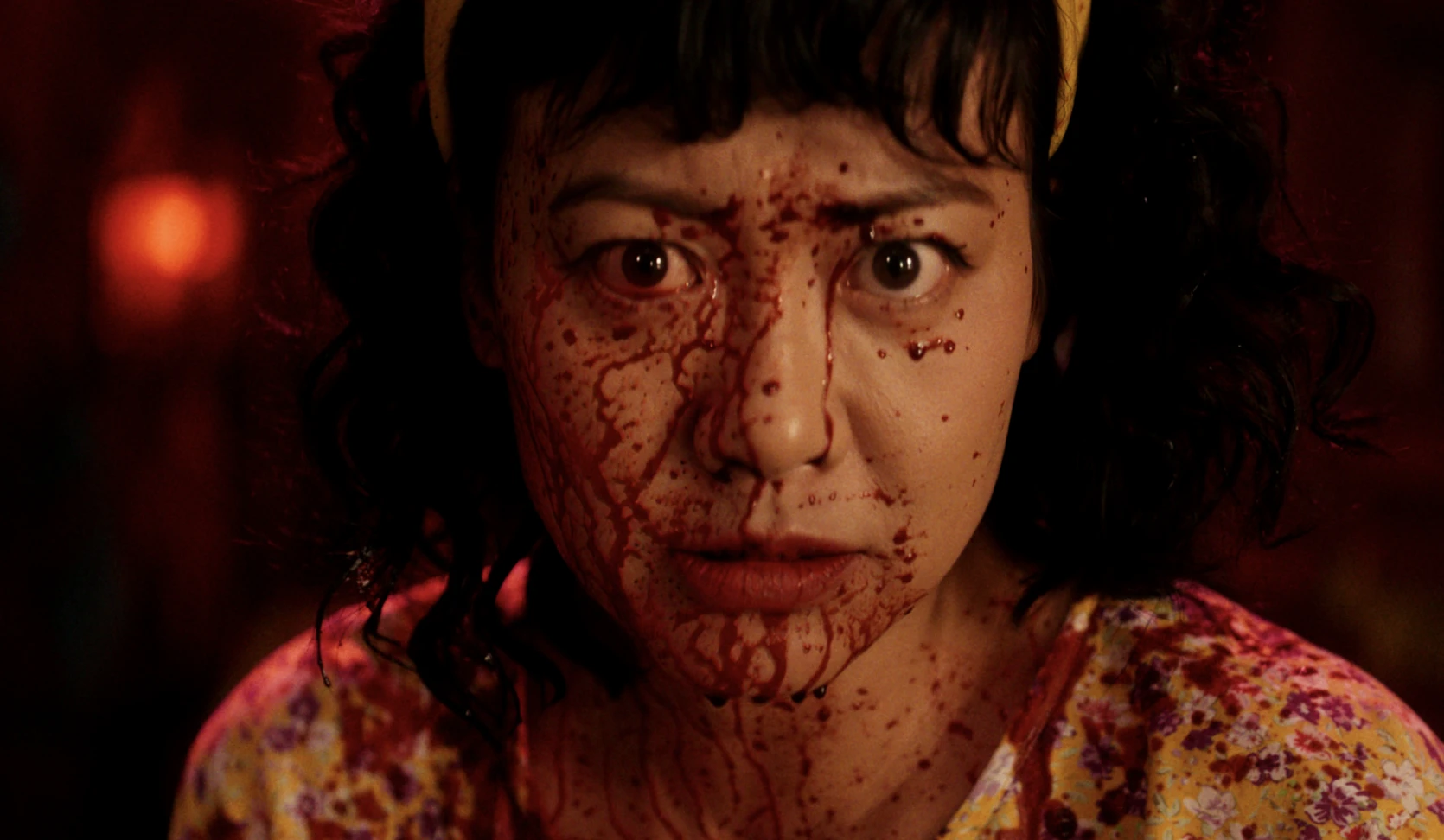Hồng Ánh với gương mặt máu me, hung tợn xuất hiện trong đoạn video giới thiệu phim . Ảnh: ĐPCC