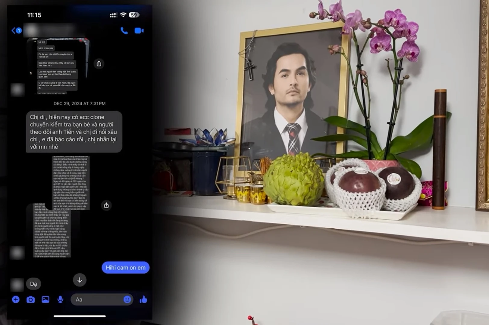 Ngày hôm nay, tôi không nói nhiều nữa. Tôi chỉ muốn cho mọi người thấy rõ bàn thờ của anh Tiến tôi vẫn bày trong nhà mới của tôi. Tôi không hề dẹp bỏ bàn thờ như lời đồn thổi sai sự thật".