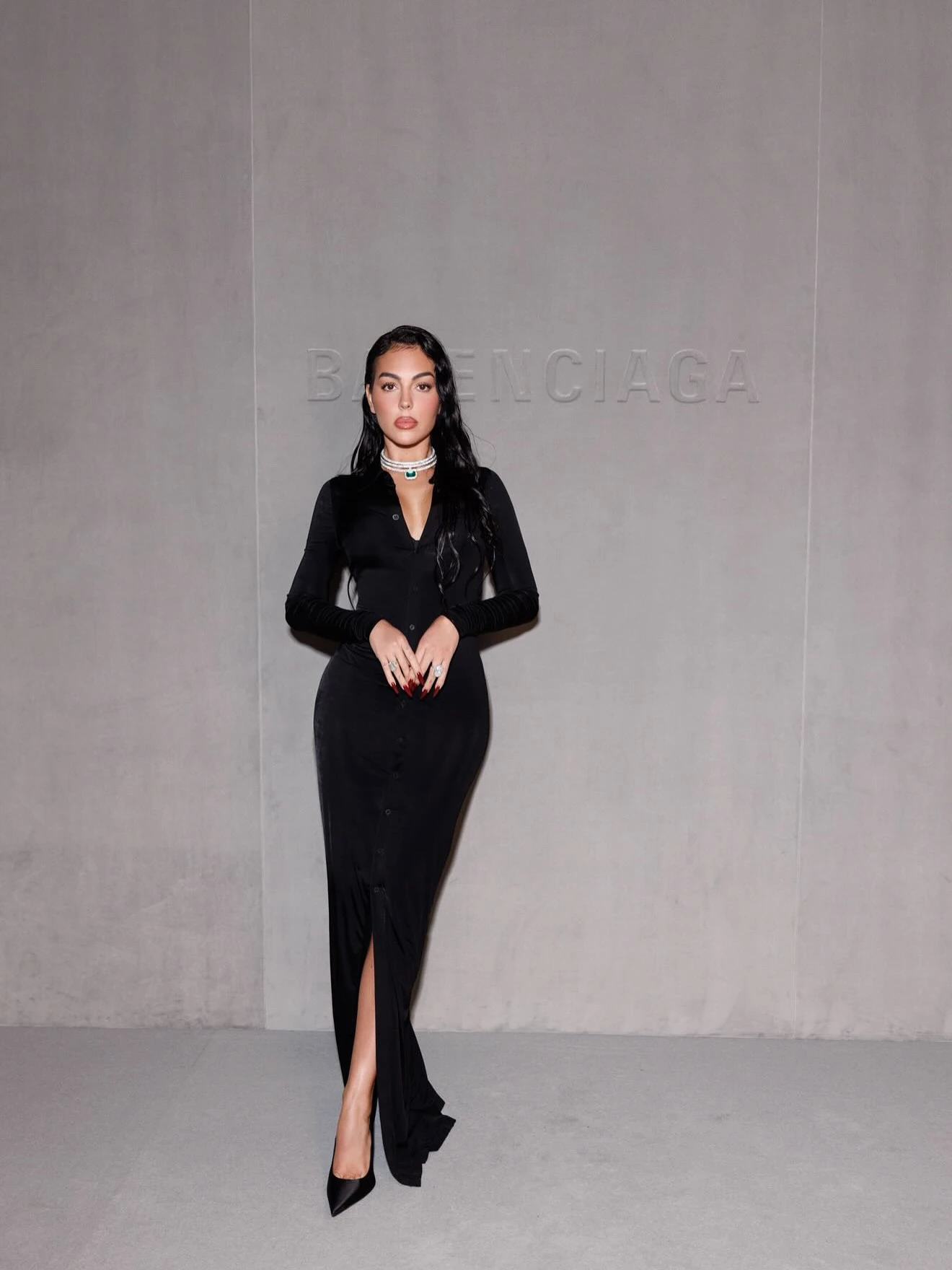 Georgina Rodríguez chiếm trọn spotlight tại show Balenciaga: diện đồ đen cực sang, khoe nhẫn kim cương trị giá hàng triệu đô.