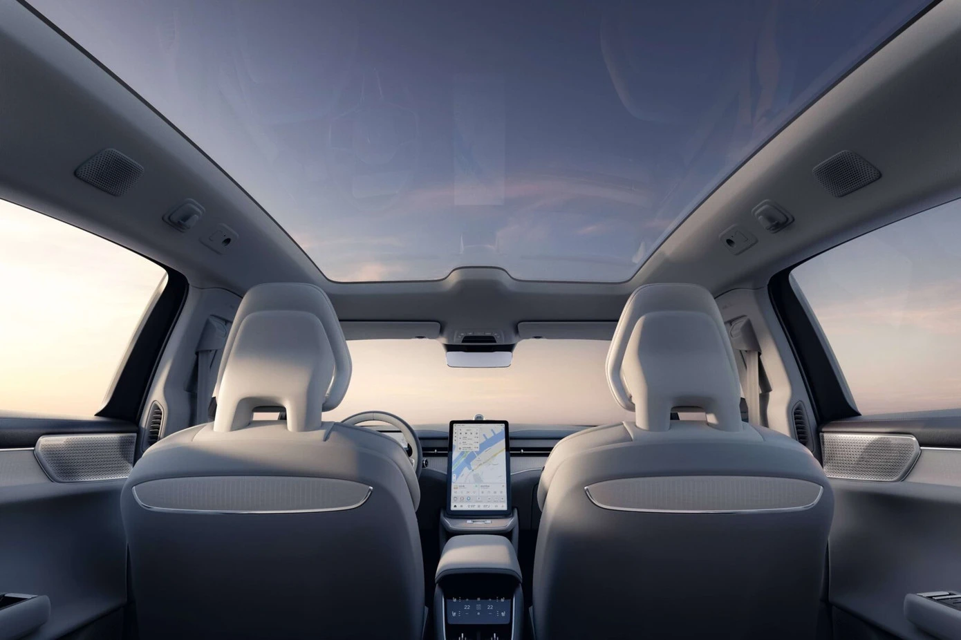 Những nâng cấp không chỉ dừng lại ở hệ thống truyền động, EX90 2026 còn được trang bị cửa sổ trời toàn cảnh điện tử mới. Trang bị này được mượn từ mẫu sedan ES90, tích hợp tấm kính đặc biệt có khả năng làm mờ và điều chỉnh độ sáng chỉ bằng một nút bấm.